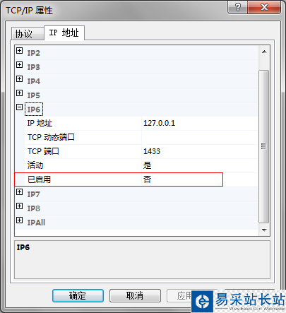 3.點擊IP地址,將IP地址為127.0.0.1(IPV4)或::1(IPV6)的已啟用修改為是,其它的IP地址的已啟用修改為否