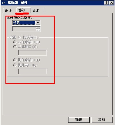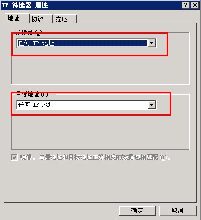10 .點擊上圖中的“添加”彈出如下窗口:地址我們就都選“任何IP地址”