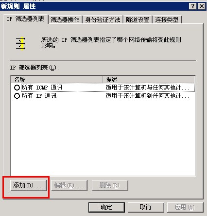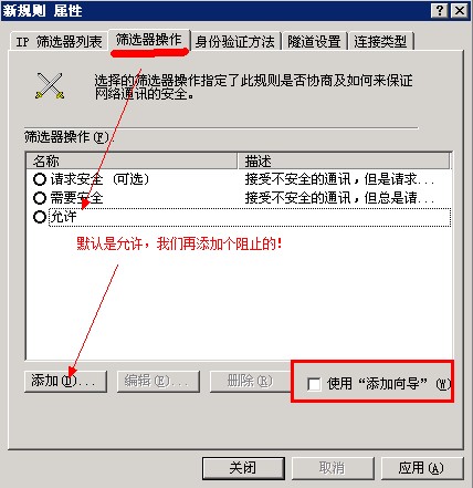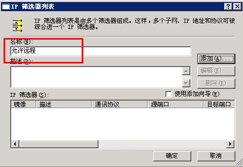 這上面就是一個阻止所有的策略了,下面我們要逐個放行,其實具體過程和上面是一樣的;設置“IP篩選器列表”可以改成允許相關的端口,比如說“遠程”那么默認的遠程端口就是3389