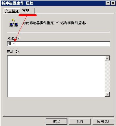 13. 我們要添加一個阻止,先做一個阻止所有端口、IP訪問進出的操作,然后再逐個放行,這個應該可以理解。我們先點常規,改個名“阻止”,然后確定。