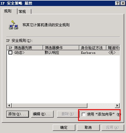 7. 雙擊策略,彈出窗口IP安全策略屬性;去掉“使用添加向導”前面的勾