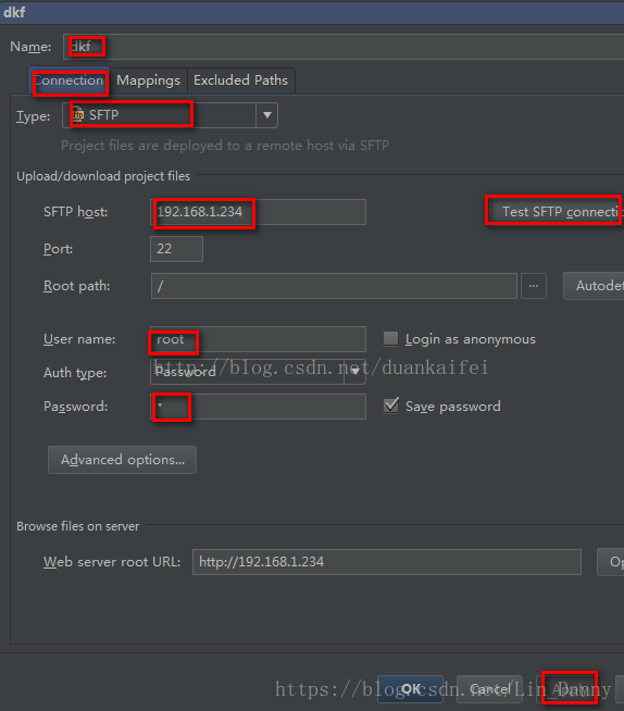 Connection下,協議最好選擇sftp,接下來填寫服務器主機IP,用戶名,密碼。