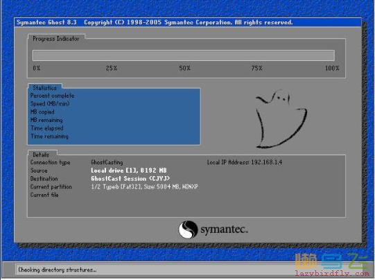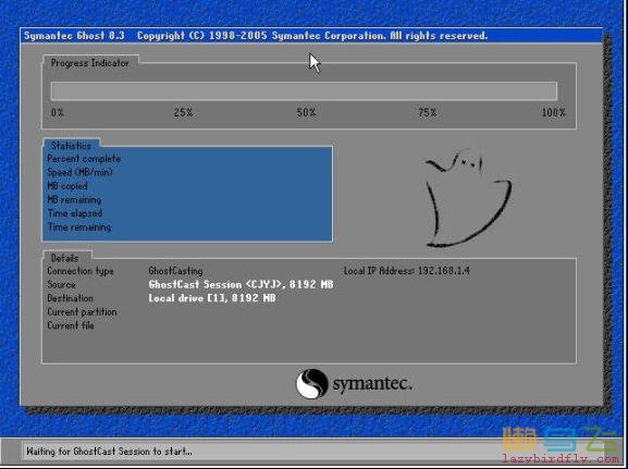 重復操作,直到所有的客戶端全部連接后點發送(我這里只連接了一臺客戶機),這時服務器端和客戶機端會同步顯示進度,耐心等待只到完成為止。