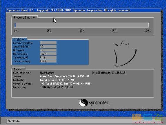 這時候ghost服務器端也會對備份進度進行同步顯示。
