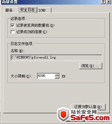 如圖4所示,選擇要記錄的項目,防火墻將記錄相應的數據,日志默認在c:/windows/pfirewall.log,用記事本就可以打開看看。