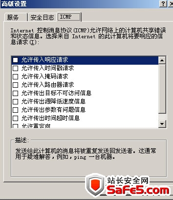 如圖5所示,最常用的ping就是用的ICMP協議,默認設置完后ping不通本機就是因為屏蔽了ICMP協議,如果想ping通本機只需將“允許傳入響應請求”一項選中即可。
