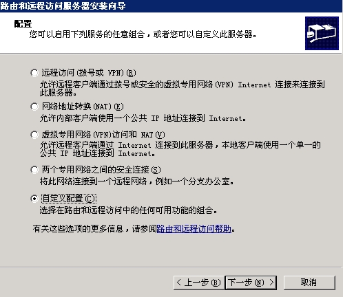 如果服務器不是具有路由功能的服務器,是單網卡的,所以這里選擇“自定義配置”,下一步