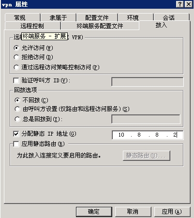 創建好后,查看這個用戶的屬性,在“撥入”標簽中做相應的設置,如圖: