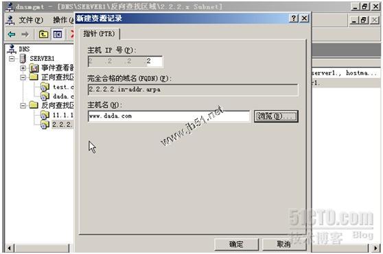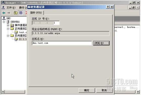 6、完成后 再按 【確定】(這是建立反向解析,11.1.1.1指向域名dns.test.com)