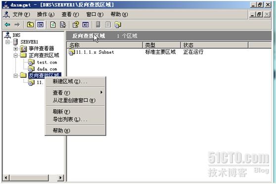 5、新建該域的反向查找區(qū)域,右鍵---新建區(qū)域。
