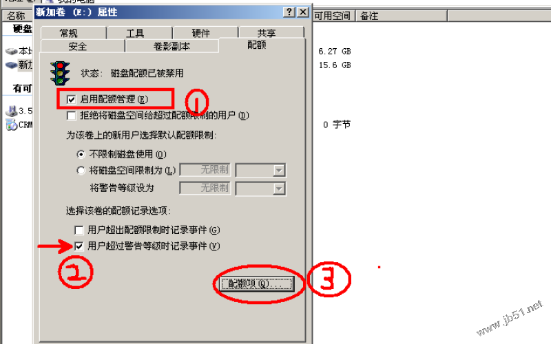 配額限制:郵件RAID5卷->配額->啟用配額管理->配額項
