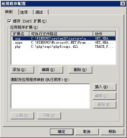 在"應用程序配置"里,我們給必要的幾種腳本執行權限:ASP.ASPX,PHP,