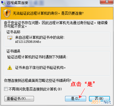 連接并且不向我發(fā)出警告:使用此選項(xiàng),即使遠(yuǎn)程桌面連接無(wú)法驗(yàn)證遠(yuǎn)程計(jì)算機(jī)的身份,它仍然會(huì)連接。