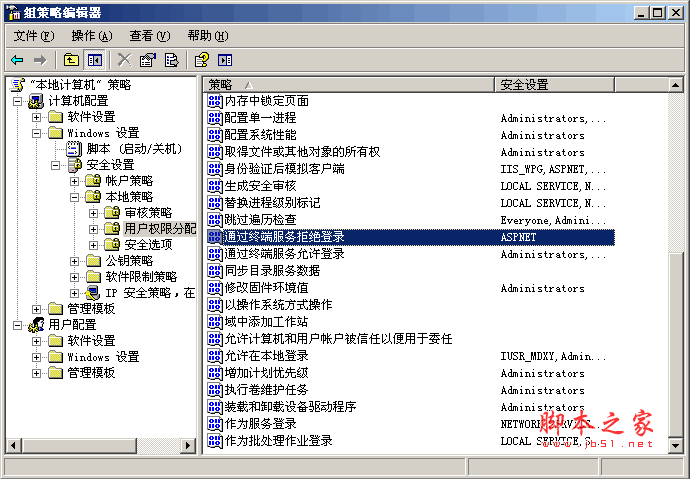 windows2003下禁止用戶遠程登錄的方法如下: