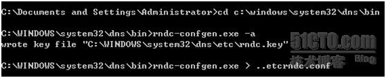 打開DOS窗口,進dns目錄,用rndc-config.exe程序生產(chǎn)rndc.key。