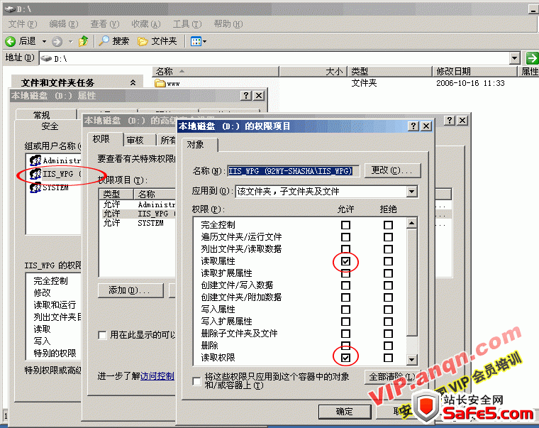 ⑵ 隨后加入IIS_WPG組,并對(duì)IIS_WPG組設(shè)定如下圖所示權(quán)限