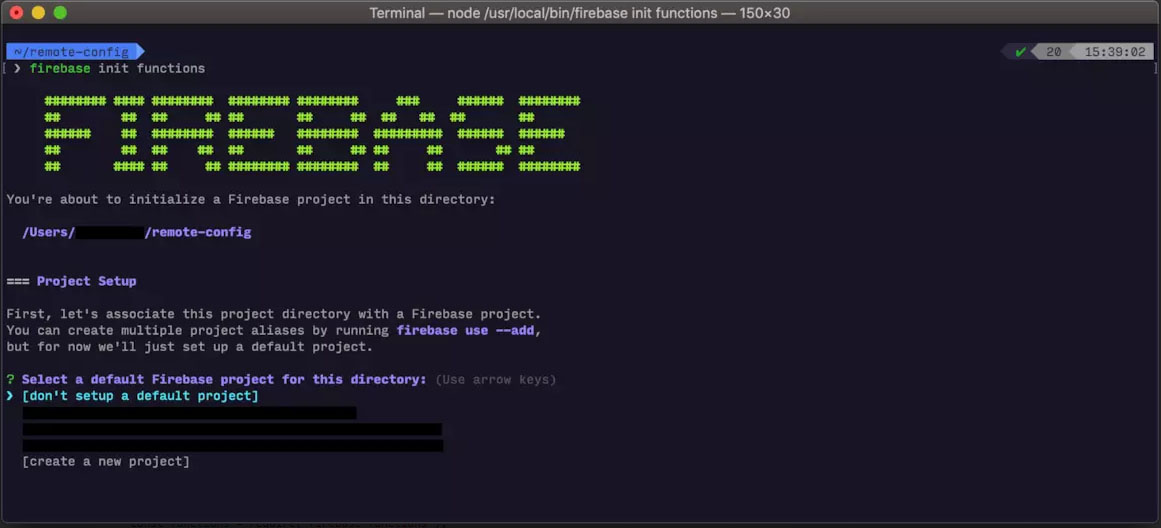 現在為函數創建一個文件夾,cd進入它并初始化Firebase項目。