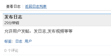 點(diǎn)擊發(fā)布日志,即可直接連接到個(gè)人家園這個(gè)應(yīng)用中標(biāo)題為發(fā)布日志的內(nèi)容頁(yè)面。