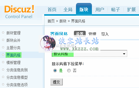 用管理員登錄論壇后臺(tái) => 版塊 => 界面風(fēng)格 => 設(shè)置:“默認(rèn)論壇風(fēng)格”選擇“默認(rèn)風(fēng)格”