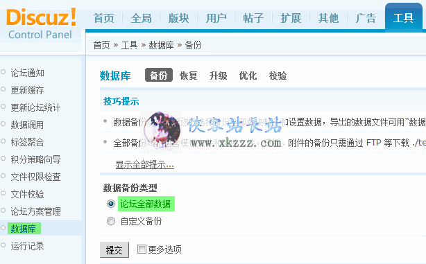 虛擬主機(jī)用戶(hù)推薦直接在論壇后臺(tái)進(jìn)行備份,用管理員登錄論壇后臺(tái) => 工具 => 數(shù)據(jù)庫(kù) => 備份:推薦備份“論壇全部數(shù)據(jù)”