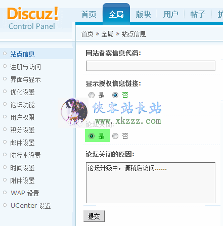 用管理員登錄論壇后臺(tái) => 全局 => 站點(diǎn)信息 => 論壇關(guān)閉:選擇“是”