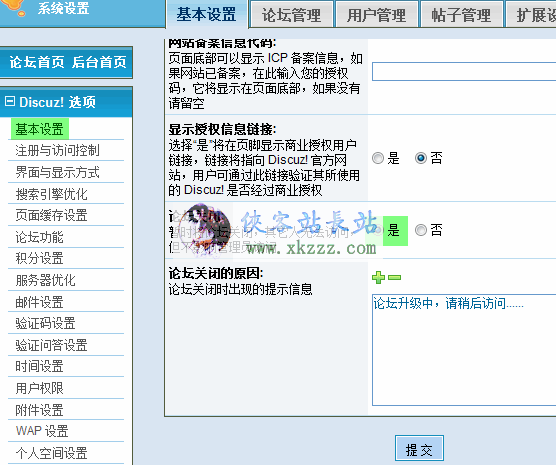 用管理員登錄論壇后臺 => 基本設置 => Discuz! 選項 => 基本設置 => 論壇關閉:選擇“是”