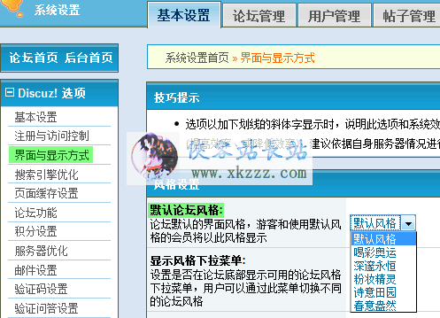 3、升級到 Discuz! 7.0.0 后原來的風格將不能繼續使用,故此在升級之前先把風格換回默認風格,并設置其他風格不可用