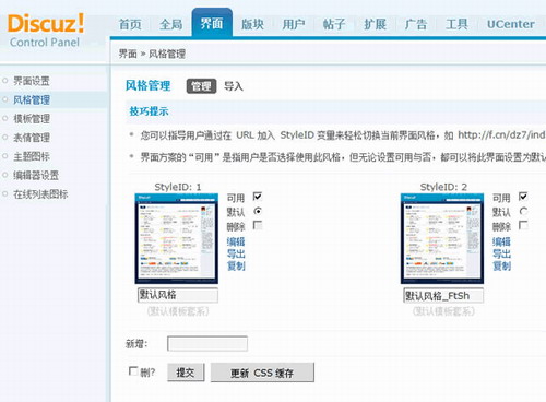 進入方法:后臺 = > 界面 = > 風格管理,進入后可以看到如下圖所示的頁面: