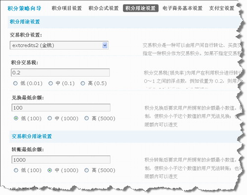用戶在論壇獲得積分后可以使用這些積分,此處就是針對用戶使用積分做的一些設置。詳細設置如下: