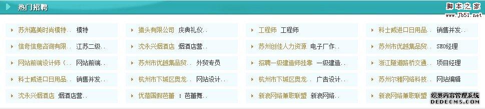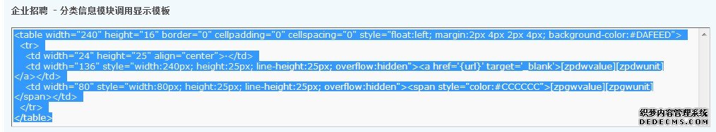 第三步,在Dreamweaver中設計分類信息的顯示布局代碼,并在要顯示分類信息的地方插入上面保存的代碼,最后復制代碼到“分類信息模塊調用顯示模板”中。