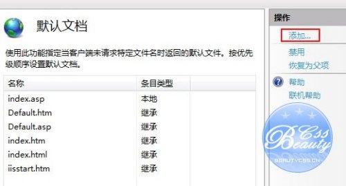 九、點(diǎn)擊 默認(rèn)文檔, 設(shè)置網(wǎng)站的默認(rèn)文檔。