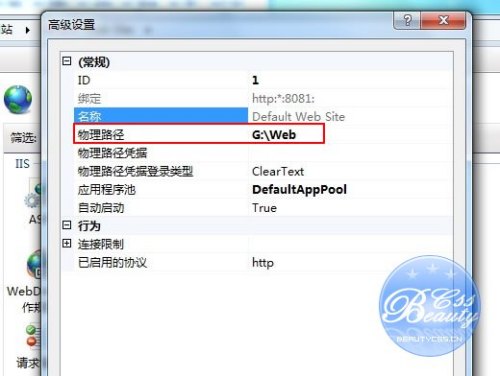 七、配置IIS7的站點(diǎn)。 單擊右邊的 高級(jí)設(shè)置 選項(xiàng),可以設(shè)置網(wǎng)站的目錄。