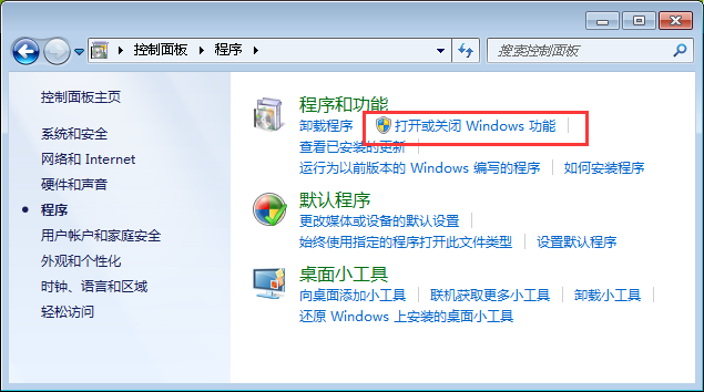 3.在打開的“程序”窗口中,找到“啟用或關閉windows功能”,點擊打開。
