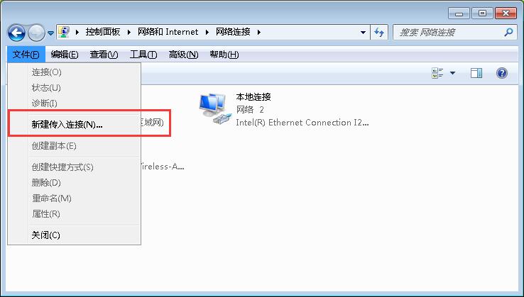 第二步:在“菜單欄”點擊“文件”, 如果沒有看到菜單欄,請按下鍵盤上的Alt按鍵,即可顯示菜單欄,選擇“新建傳入連接”(這個比較的重要)。