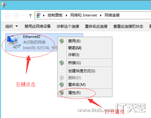 右鍵點(diǎn)擊網(wǎng)絡(luò)圖標(biāo)打開(kāi)網(wǎng)絡(luò)共享中心