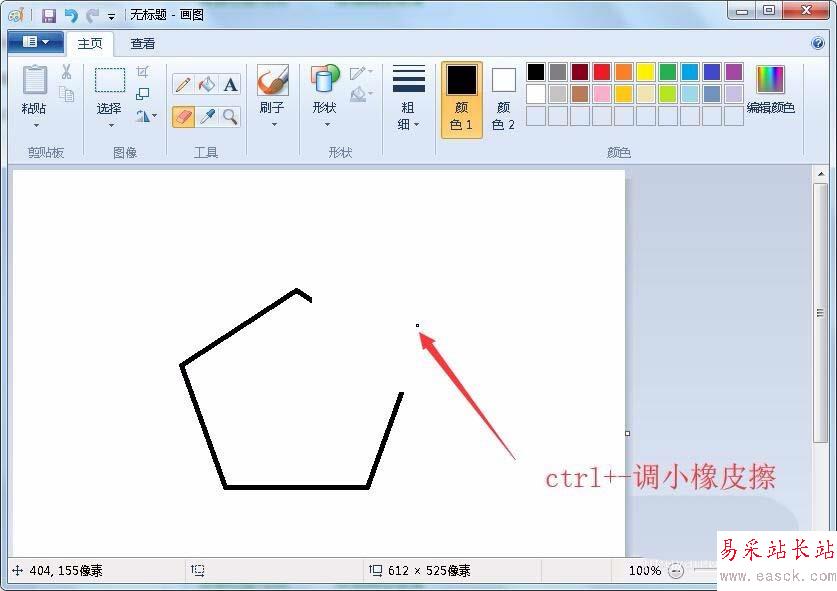 5、掌握橡皮擦形狀調整大小后,通過適當調整來擦除現有圖形或者顏色,擦除起來就會比較省力,且時間快速。