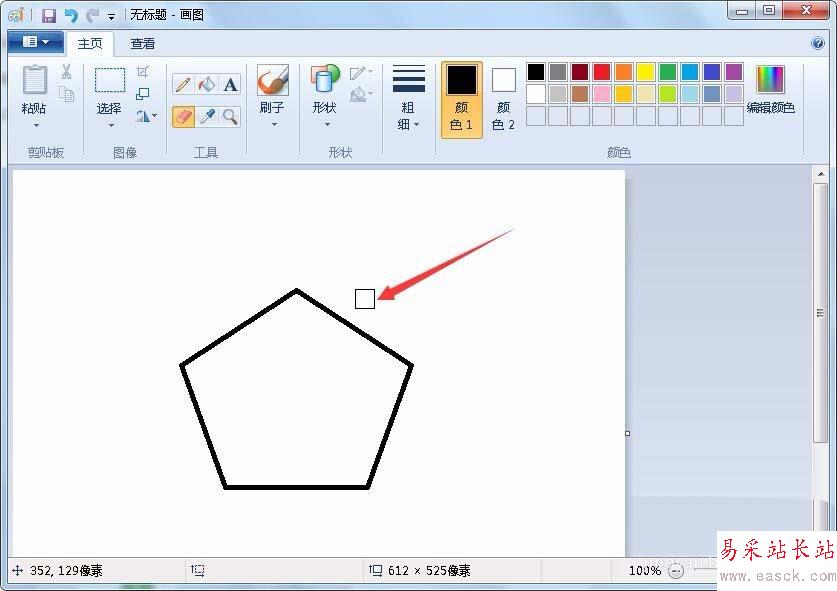 2、在畫圖中選擇橡皮擦工具,當前顯示橡皮擦的大小形狀太小,擦除現有顏色豈不是很慢又浪費時間。