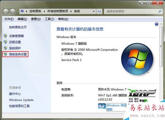 2、打開計算機屬性面板后,點擊左邊的“高級系統設置”選項,如下圖所示: