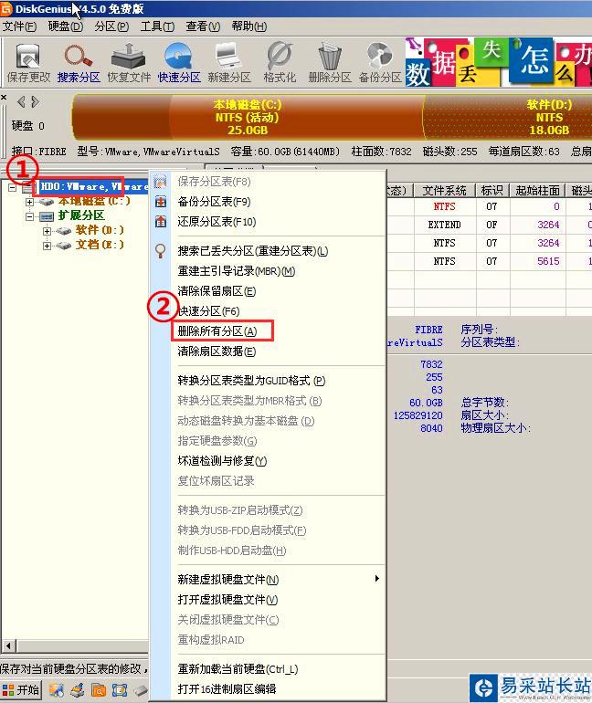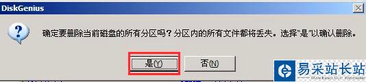 3、再打開的分區表工具中,在物理硬盤上右擊,選擇“刪除所有分區”選項,在彈出提示框選擇“是”,如下圖所示: