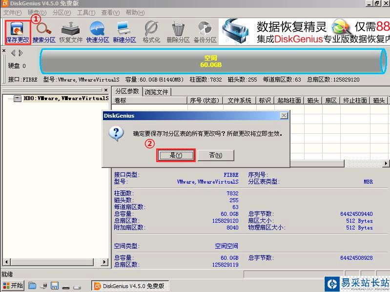 5、到這里,我們已經將分區表格式轉換完成,此時需要保存信息,只需點擊左上角的“保存更改”,在彈框提示中選擇“是”即可。如下圖所示: