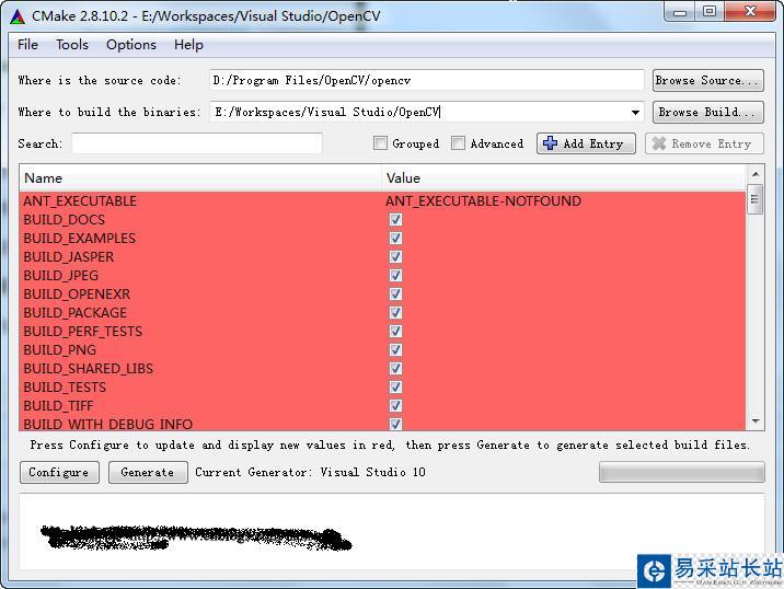 此過程用于將安裝OpenCV后得到的源碼編譯為相應版本的VS工程。詳細步驟如下。