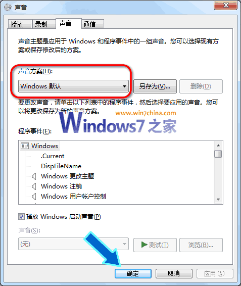 2、點擊“聲音”—》“聲音方案”改成xp系統默認試試……