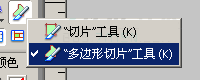 3.然后用切片工具根據按鈕重疊的形狀,勾出多邊型切片,如圖所示: