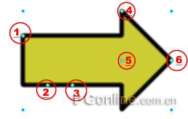 3、如果大家對微軟的軟件中的圖形工具經常使用的話,相信對這些菱形的圖標不會陌生,而且估計你首先想到的就是會用你的鼠標去拖拽它們。呵呵,會有什么效果出現呢?我們依次來看看各個數值標示的調整點的拖拽情況: