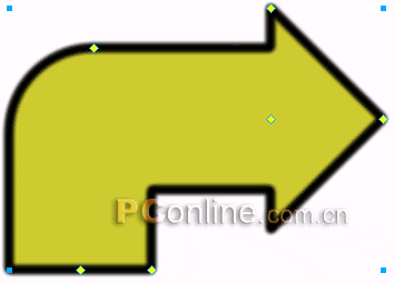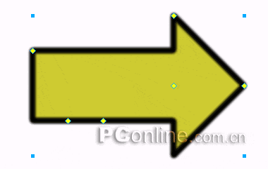 2、選中箭頭對象,我們除了可以調整它的填充顏色,描邊形狀外,大家應該可以注意到,在該繪制對象上有六個黃色的菱形標記。如下圖所示: