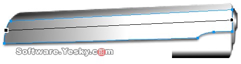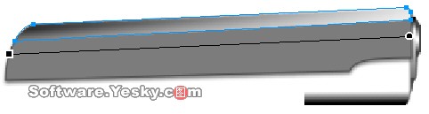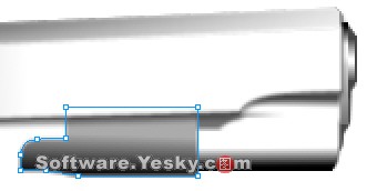 為了使槍栓具有金屬的立體感,我們復(fù)制多一個(gè)上圖的槍栓外形路徑,用“細(xì)部”工具點(diǎn)選并刪除一些我們不要的節(jié)點(diǎn),再進(jìn)行調(diào)整,最終形成如下圖中的形態(tài)。然后采用線性填充,左右兩個(gè)顏色滑塊均填以全白色,然后把其中一端滑塊的“不透明度”設(shè)為0。
