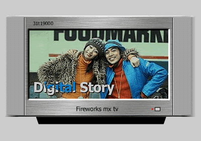 5.設置完以后為了增加電視屏幕的立體感,我們在用直線工具給屏幕邊加上白和黑各2條象素4的線條。得到效果如圖5