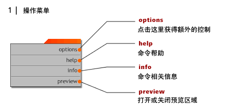 缺省狀態(tài)下option菜單出現(xiàn)在主界面的右邊,當(dāng)然,如果你愿意,可以拖動(dòng)菜單頂端的橙色手柄到界面中的新位置。option菜單中有以下四個(gè)菜單: