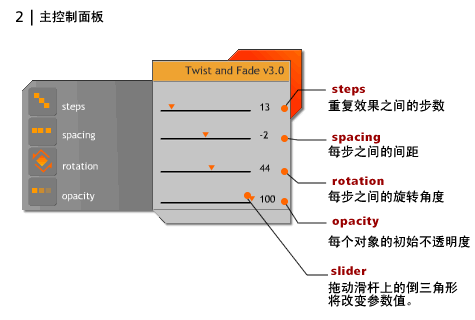 隨著fwmx的推出,在fwmx的commands菜單下我們發(fā)現(xiàn)了熟悉的twist and fade命令,而且此次隨fwmx附帶的是最新的3.0版本,此版本最大的變 化可以說就是提供了新的交互式操作界面,這樣我們可以更加精確控制圖形變化結(jié)果,另一個(gè)方便的功能就是提供了圖形預(yù)覽的窗口,這樣你可以隨時(shí)觀察你的設(shè)置對(duì)圖像所發(fā)生的影響。需要指出的是,此版本的操作界面使用了新的swf包裝方式,利用將命令與界面包裝在了一起,完全體現(xiàn)了fwmx的方向。