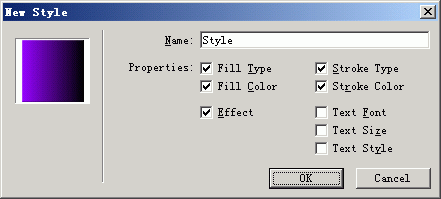 8、 打開style面板,選中剛才創(chuàng)建的矩形,在style面板的彈出菜單中選擇new style創(chuàng)建一個新的樣式,并命名為mystyle,如下圖: